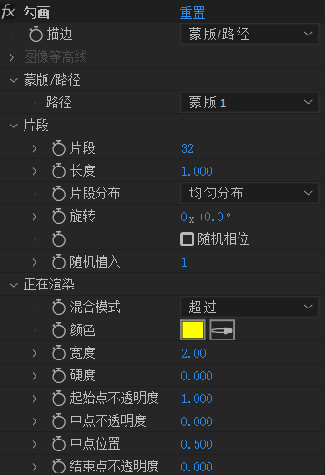 描边:淡入/淡出时间:用来生长/消失的时间开始/末端宽度:最开始/结束时线条宽度