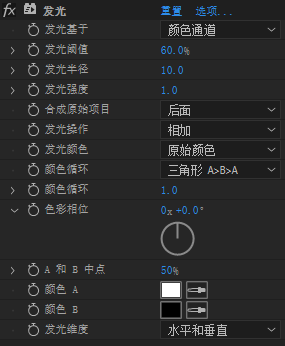 霓虹灯光:将发光效果复制三层,颜色A/B色相依次上升