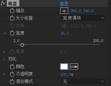 锚点&大小依据:选取不同的确定方块大小的方法边角点:方块大小为边角点到锚点的长宽宽度滑块:方块为边长为宽度的正方形宽度和高度滑块:方块为宽度和高度的方块