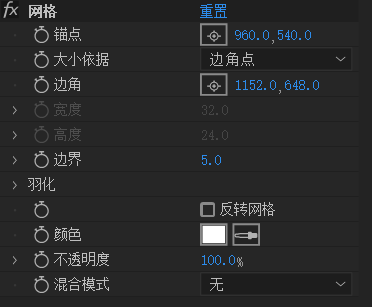边界:方块的边缘宽度羽化:方块边缘的羽化颜色:网格的颜色反转网格:将网格的颜色变为方块的颜色