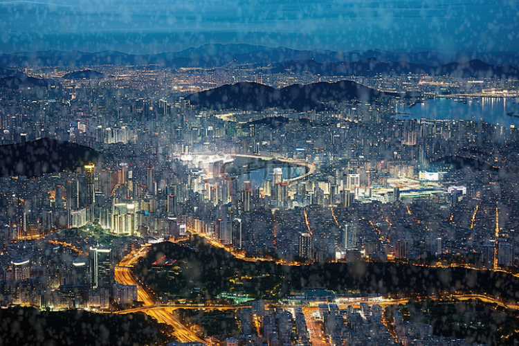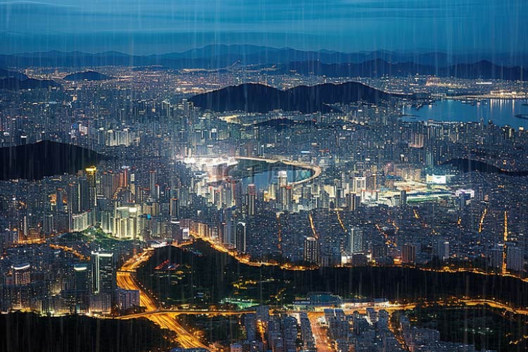 城市夜景:城市图层复制一层,上层扣个蒙版,添加