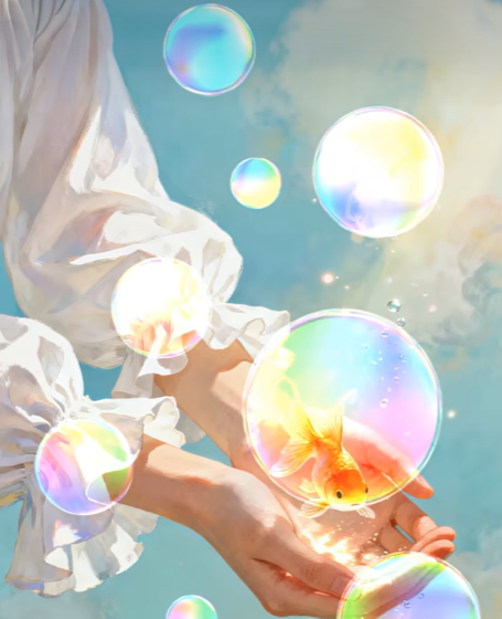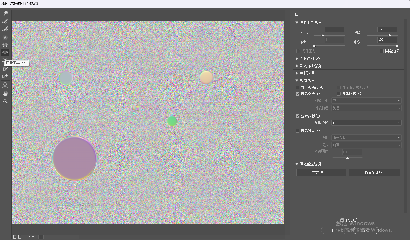选择滤镜>液化,然后选择膨胀工具,密度和速率适度上调,然后点击。最后把泡泡抠出来,然后施加减淡组的模式。