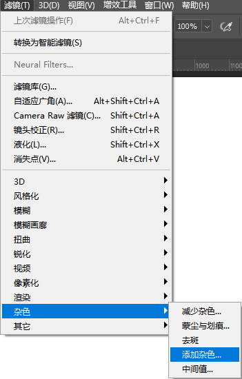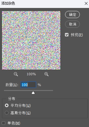 选择滤镜>杂色>添加杂色果真杂色就是啥都能做,数量改为100%。